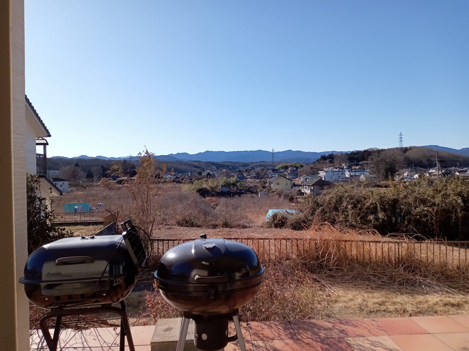 窓の外には美しい秩父連山が一望でき、BBQや流しソーメンを楽しめるスペースがあります。