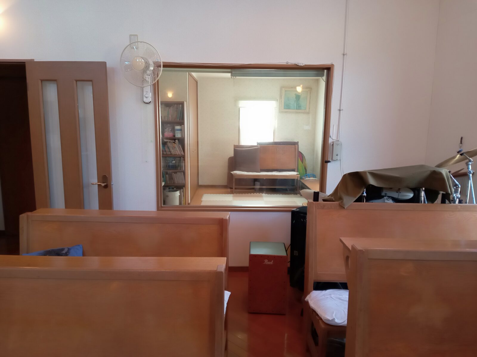 水曜の祈祷会はテーブルを並べ直して、この部屋で行います。