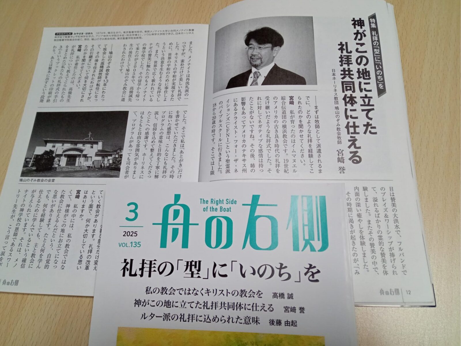 礼拝式について特集を掲載してもらいました。タイトル「礼拝の『型』に『いのち』を」