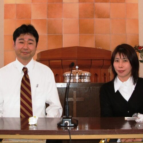 主任 千代崎秀雄牧師、副牧師 芳賀(江副)千恵美牧師